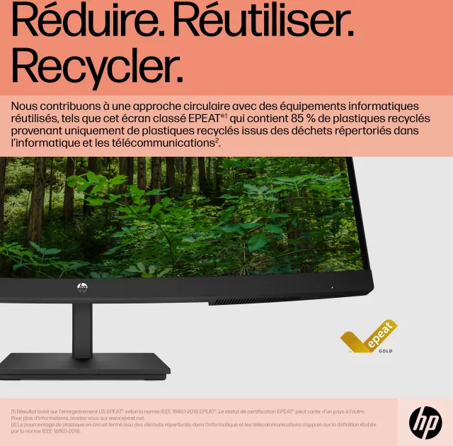 - Le matériau d’emballage en pâte à papier moulée à l’intérieur de la boîte est intégralement constitué de matériaux recyclables provenant de sources durables; 85 % de plastique en circuit fermé issu des déchets répertoriés dans l’informatique et les télécommunications; Faible teneur en halogène