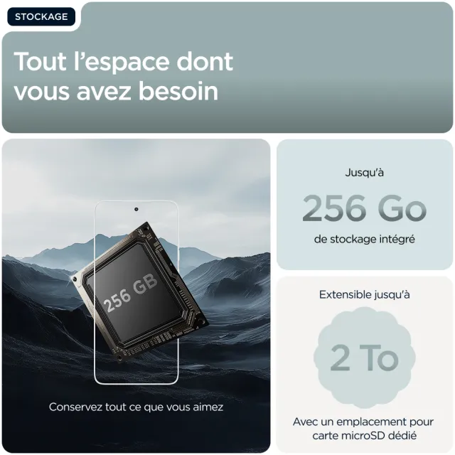 On parle de stockage très élevé à partir de 256 Go de capacité de stockage. C'est idéal pour conserver de nombreuses photos, vidéos, fichiers audio sur son appareil.