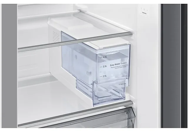 Selon les modèles, le distributeur peut-être sous forme de bac dans la porte intérieure à remplir manuellement, ou bien connecté directement à votre réseau d'eau.