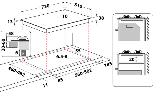 - 307e/368 parmi les plaques de cuisson Beko au gaz
